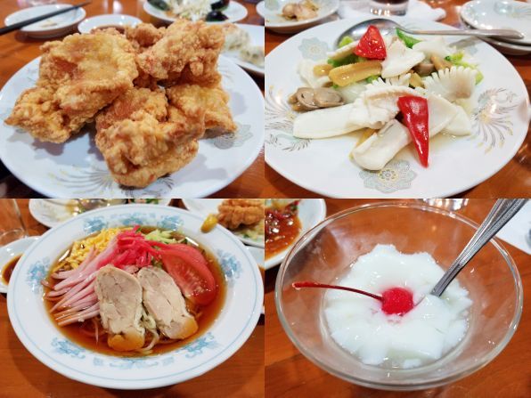 参加メンバーは9名でしたのが、5~6人用の"6000円コース"を二つお願いしていました、、、内容は、"棒々鶏"、"エビチリ"、"八宝菜"、"青椒牛肉絲"、"イカと野菜炒め"、"鶏肉の唐揚げ"、"五目炒飯"、"海鮮スープ"、"杏仁豆腐"です。。。後は飲み物と追加料理を、それぞれ自由にお願いします。。。