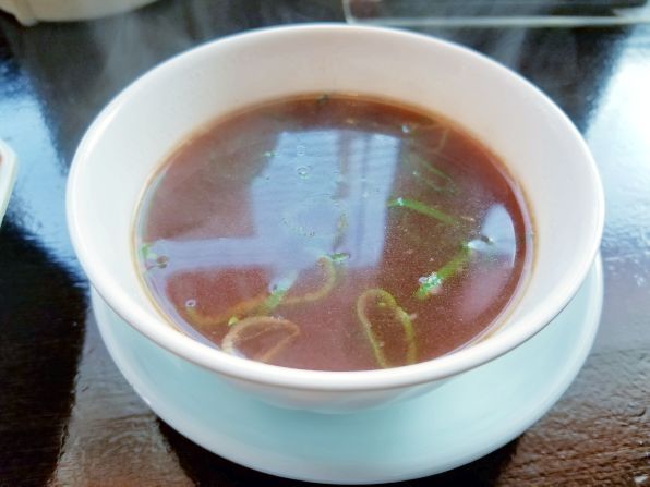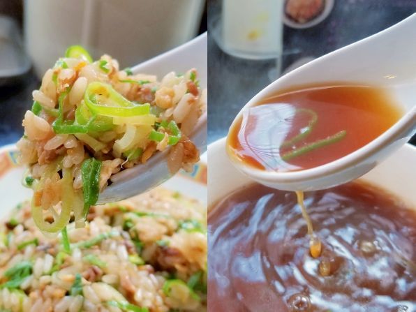 "焼き飯"を口内に頬張り、豚骨ベースの濃い醤油味の"スープ"を流し混みます、、、"スープ"は表面に白濁がありますが、基本的には醤油味の清湯スープなので中は濁っていません。。。"焼き飯"と"スープ"の相性もバッチリっ!! うんうん、旨い旨い~☆