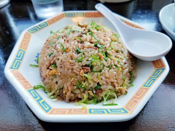 さぁ気になるお味です。。。テラテラと黒光りした"焼き飯"は、パリっとしっかり焼き込まれ、パラパラの中にも醤油煮汁の芳ばしいさが漂っています、、、その中にシャクシャク爽快な歯ごたえの"九条ネギ"が最高っ!!