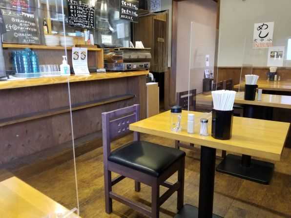 [テーブル席にはアクリル板]