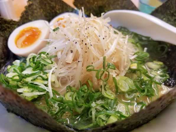 午後1時30分頃に入店すると、カウンターにお客さんが1人です、、、私は2人掛けのテーブル席に着き、久しぶりに"海苔ネギラーメン"を"味玉"トッピングでお願いしました。。。やがて待つこと約3分、、、アッという間にできあがりです。。。