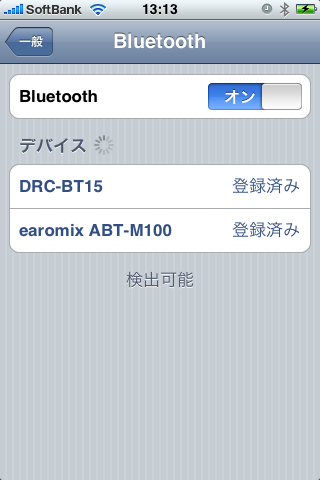 むむぅ・・・ここ最近、SoftBank同士で長話する機会が多いまず使用している機器をご紹介送料無料!!★★SONY iPod用Bluetooth トランスミッター TMR-BT8iP★★【NS02送料無料】【送料無料・代引手数料無料】Bluetooth対応ワイヤレスオーディオレシーバーSONY DRC-BT15PPICCO(ピッコ)Bluetooth ワイヤレスハンズフリーキット 1個超小型 超軽量 高音質 格安 耳かけタイプヘッドセットBluetoothで会話しているから電池の減りが早いという訳ではない何故か、途中で充電されなくなるんだなぁ・・・電池の残量が少なくても充電完了アイコンになってしまう送料無料!!★★SONY iPod用Bluetooth トランスミッター TMR-BT8iP★★【NS02送料無料】なので、これを使っていようがいまいが、Bluetoothのレシーバーが認識してしまうと、この状態に陥るケーブルの問題かな?と最初思ったけど、どうやらそうでもないらしい・・・充電中の作業(通話、同期他)が原因じゃないかって思ってる家にいるときは、電池を使い切って再充電で、特に問題なく通常の状態に戻るからいいんだでも、急いで外に出なきゃならない時はちょっと困るなぁ~外付けバッテリー買うかな・・・快適なBluetooth音楽生活を送っていただけに、ストレスが溜まる事件長電話しなきゃ良いだけの話だけど!↑のTMR-BT8iP取扱店、よく売り切れるので、その場合、こちらでも扱っているようです【日本未発売!送料・手数料無料】SONY iPod用Bluetooth TMR-BT8iP 【黒】【日本未発売!送料・手数料無料】SONY iPod用Bluetooth TMR-BT8iP 【白】
