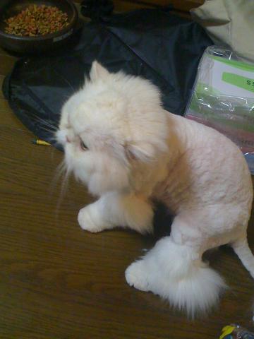 正式名称は『ヘチャムクレプードル』顔が潰れてるのが特徴シャレでやってみたが、こんなホッソリさんだとは思わなんだゴージャスな毛が・・・・トリミング中、大笑いしながらズーッと見てたら、ペルシアン特有の極細毛を花粉のように吸い込んでクシャミが止まりません