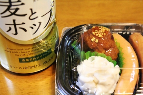 今日の肴はローソンで買ってきた彩か亭3種の盛り合わせ。105円也(苦笑)。
