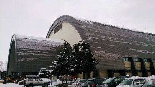 1周276mの観覧席通路をジョグで30分。少しひんやりするが、雪道ランよりはかなりいい。