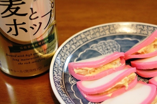 今日の肴は留萌・浜本水産の山海漬とかまぼこ。山海漬は増毛・国稀酒造の吟醸粕に数の子・大根・きゅうりを混ぜたわさび漬け。辛すぎず美味い!