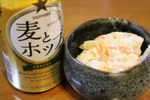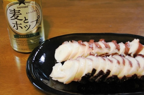 今日の肴は氷頭なます。それにしても、実家で飲むエビスよりも自宅で飲む発泡酒の方が美味く感じるのはどうして?