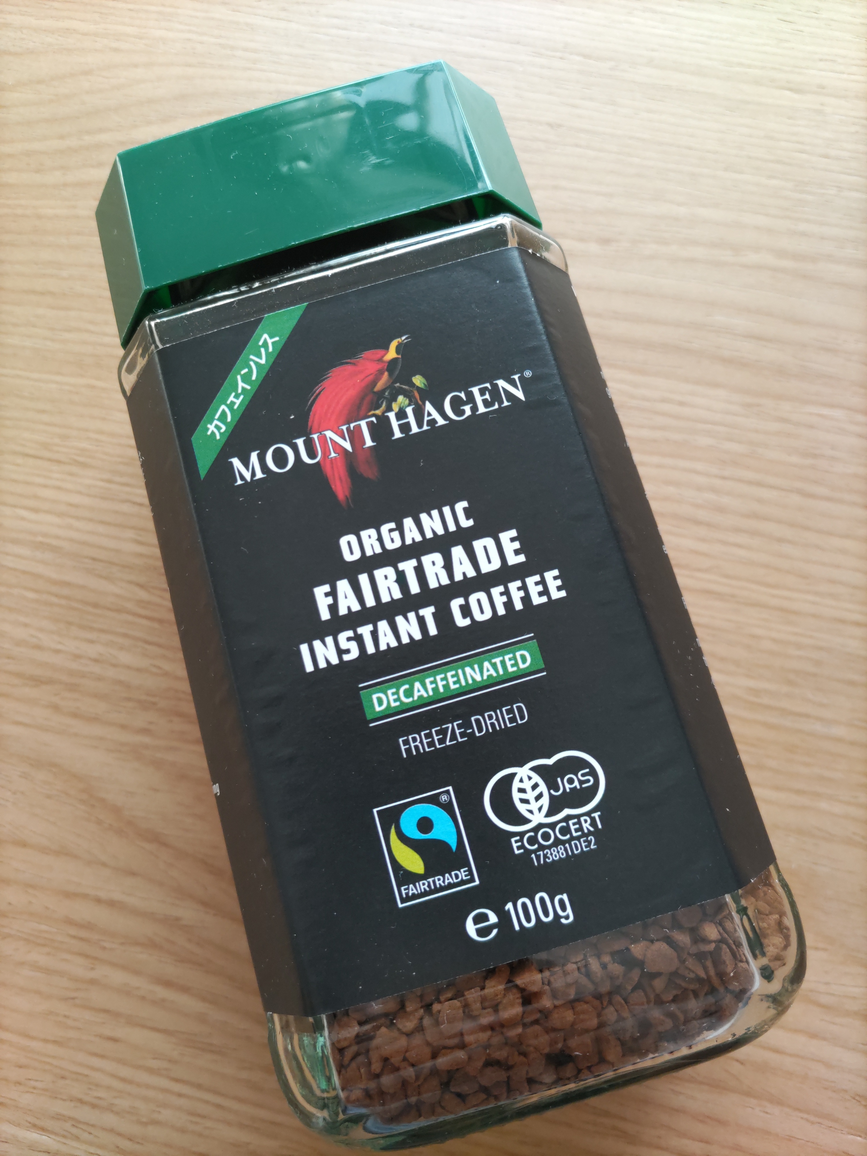 日に3〜4杯飲む習慣になっているコーヒーなんですが。時間帯?というか気分で飲み分けています。朝はエスプレッソマシンで抽出してカプチーノ。昼はドリップのブラックコーヒー。朝以外はおとものオヤツが必ず必要です。夜はカフェインレスのインスタントコーヒー。片付けやらバタバタしながらでも、食後のコーヒーは欠かせません。眠れないだろうから…という理由でカフェインレスを選んでいるつもりではないんですが、日に3〜4杯飲むならその内1杯カフェインレスでも飲んでみる?…という衝動買いが発端でした。妊娠中や産後にカフェインレスを飲んでいた時期あったんですが、やっぱりカフェインレスは物足りないなぁ…なんて思ってました。しかしマウントハーゲンのカフェインレスは違いました。ブラックでも美味しくて、しっかり満足させてくれました!どう言うわけか、インスタントコーヒーはカフェオレにしないと飲みづらく感じていました。ちなみに、カフェインレスなのに美味しい!ってことで、マウントハーゲンはカフェインレスしか飲んだこと無いです、すみません⤵️そのへんのスーパーで売ってないのが残念です…。なので、楽天で外出せず買ってます☕【2/5限定!抽選で最大100%ポイントバック】マウントハーゲン オーガニック フェアトレード カフェインレス インスタントコーヒー [MOUNT HAGEN 有機栽培 オーガニック コーヒー デカフェ(カフェインレスコーヒー) ディカフェ 珈琲 coffee 妊婦 授乳]
