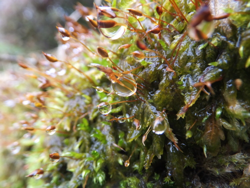 おはようございます。今朝も雨 山沿いは雪が積もっているようですが 私のところからは確認できません。今朝も雨の中 徒歩通勤 昨日より風がないので 歩くには楽でしたね。昨日は バレンタイン・・意味もわからず 女性からプレゼントがある日 年々 貰える数が減っています・・(+o+) 今年は 出張先と合わせると7個 まぁこのくらいが お返しも楽ですね・・・保険やさんからも貰いましたが・・これはカウントせずお返しもなし・・・保険やさんもこの時期大変ですね・・。画像は 出張先の パン食堂・・美味しいパンが食べられるお店 その駐車場にコケが そして 雨上がりということもあって 雫がいっぱい・・・撮り放題です。(^_^メ)アップで