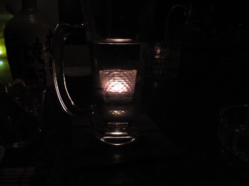 おはようございます。今朝は曇っています。富士山も見えません。 風があり 冷たい朝となっています。昨日は胃カメラ・・麻酔の影響か お昼過ぎまで寝ていました。次女が昨日はお休み 昼食を作って貰ったのですが 直前直後・・寝ていました。 そして夜もぐっすり眠れました。(^-^) 胃カメラ結果は 昨年11月の時よりは 改善していますが まだ 胃の中は荒れています。 引き続き薬が出ました・・でも 時折チクリと痛みが出ます。画像は スナックのロウソク明かり お湯割りグラスの向こうに ロウソク・・行くわかりませんね・・<m(__)m>こちは 新しく見つけたお店 日本酒が主に置いてあります。冷酒美味しかったですね。