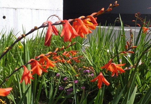 おはようございます。梅雨の中休みなのか 今日も良い天気 朝から暑いです。 今日から半袖ポロシャツで通勤 日陰を探してあつきました・・・(^_^メ)昨日は久しぶりのトンボ撮り・・・本当はアジサイを撮りに行きたかったのですが・・・時間的いけなくなってしまいました・・。トンボの画像はまた後日今日の画像は モントブレチア・・街中の花壇で咲いています。