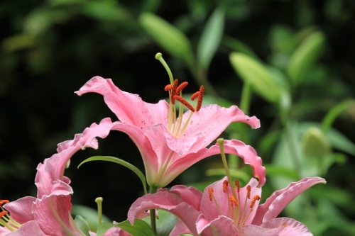 おはようございあす。今朝は小雨が降っていたようですが 今は上がっています。曇っています。今日はこれからお仕事へ行ってきます。 午前中で終わる予定ですので早く行って終わらせたいですね。画像は 百合 赤系を集めてみました。お洒落に飾りを付けていました。