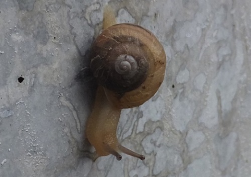 おはようございます。今朝は曇っています。今朝のテレビの天気予報は しばらく梅雨の中休みとか これから先7日間は」雨マーク有りませんでしたね・・どうなることやら・・。でも 今日も蒸し暑いですね。画像は この時期よく目にする この子たち コンクリートの壁にいる時は良いのですがアスファルトを歩くと ひかれたり 踏みつぶされます・・・