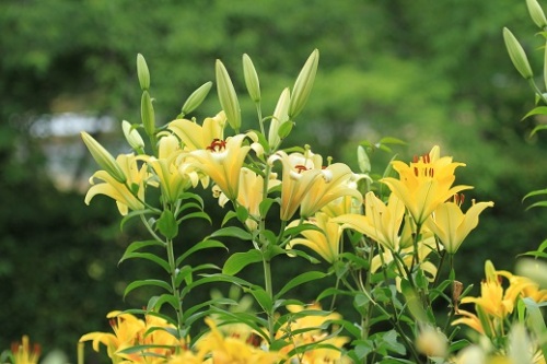 おはようございます。今朝は曇り 外は涼しいですね・・・今日は少しお仕事がんばります。通勤途中の巴川に 久しぶりに オオバンの姿を発見 3羽いましたね。北国に帰るのをあきらめた者たちです・・。でも元気で何より。(*^_^*)画像はユリ園から 色は黄色系でまとめました。