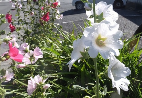 おはようございます。今朝も朝からいい天気。昨日も湿気もなく 心地よい風があって 気持ちよかったですね・・気温は高かったのですが4絵や崑いらず。そして いたずらな風が 私の仕事の邪魔を・・台車に乗せた空箱が 風と共に私の横まで・・何回も治してもまた・・・台車にストッパ^-がないために・・何回も遊びました・・・(*^。^*)画像は通勤途中で見る花・・床屋さんの庭先で咲いたいます。