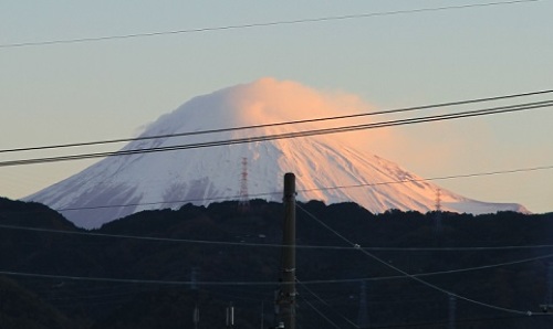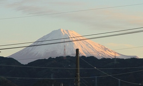 おはようございます。冷え込んだ朝になっています・・風も冷たいです。 歩いていて耳が冷たい・・そんな朝です。富士山はくっきりと見えます。 でも明日は雨予報になっていました。 急に寒くなり 雪国ではすごい吹雪・・あれを見ているだけで寒くなります。私ごとですが 明日から旅行・・といっても いつも行っていた 九州へ 実は 10月ごろ 地元飛行機会社FDAが 記念の旅券を販売 静岡-福岡を5000円(片道)ですが販売 すぐに買いましたね 帰りは7000円ぐらいだったと思います。燃料チャージ合わせて 16000円ぐらいだと思いました。で 日曜日に帰ってくる予定で行ってきます・・が 日頃の行いのせおか あまりお天気よくないです・・・。今日の夕方には福岡についています。画像は昨日朝の富士山 日中は 山頂付近がだいぶ風が強かったようで 雪が舞いあがっていました。