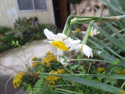 おはようございます。今朝は雨 予報では夕方まで降るとのこと。少し肌寒いような気がします。 いよいよ12月 今年も1ケ月 早い物です。昨日はお歳暮の品定め・・・歩いていると ビールのサービス品(350ミリリットル缶)をいただき 8本もいただきました・・・しばらくビールが飲めます。(*^_^*)画像は 通勤途中の花 水仙が咲いています。