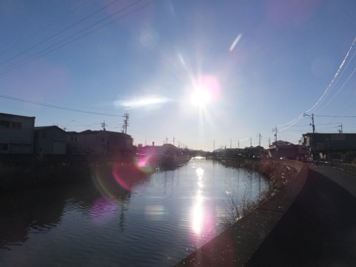 おはようございます。今朝は冷え込んでいます。氷も張っています。でも良い天気になりそうです。昨日 作業中なんですが ちょっと溶接仕事をする機会があり 軍手をして溶接すると 火花が軍手に飛ぶと 火傷をするので 素手で行いました。素手ですと 手に火の粉が当たっても 跳ね返って 熱くありません。 でも昨日は その外した 軍手に火花が飛び 火がつきました\(◎o◎)/! すぐ消しましたが くすぶって 結局 500円だまぐらいの穴が開きましたね。・・・気をつけなければ・・と 思いを新たにしましたね。画像は 日中の散歩中 あまりにまぶしかったので 撮ってみました。 川は巴川です。(午後3時ごろ)