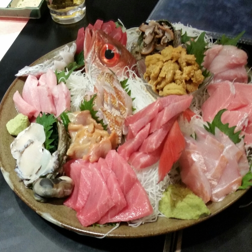 おはようございます。今朝もすっきりと晴れています。海側には雲がかかり 太陽が上がってきていて 雲が赤く染まっています。 今朝は通勤途中 子供たちと会いましたが あまり多くはありません・・・いつものメンバーがいない・・・学級閉鎖でもあったかな・・?画像は 先日 九州のお仕事上のお客さんたちと 食事会 美味しいお刺身ばかり・・・\(◎o◎)/! お店の前には・・・こんな食品サンプルが・・・\(◎o◎)/!