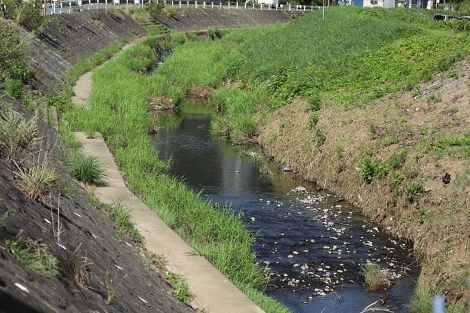 おはようございます。今朝は曇り22度(5:30)でも徐々に晴れてきそうです。6:30頃には 富士山のすそのあたりが 少し見えてきました・・画像ありません。昨日は 孫2の運動会 まだ 年少組 我が孫だけでなく 全員が可愛い・・。 9時から始まり 10時過ぎぐらいには ポツポツと 省略された 競技もありますが・・何とか 3競技終えましたね。その後は 婿さんのお母さんも来ていたので 久しぶりに 夜の食事会で お母さんの 愚痴聴く のみかいになりました・・。画像は 9月23日 塩田川へ 彼岸花を目的に やってきました。下のコンクリートの道を歩きます。こんなところに ツマグロヒョウモンが 疲れたのかな?ここへ来ると 川の中 写します。 この魚は ウグイの群れかな。目的の 彼岸花が 咲いている ところに来ました。続く競技を待つ 孫2