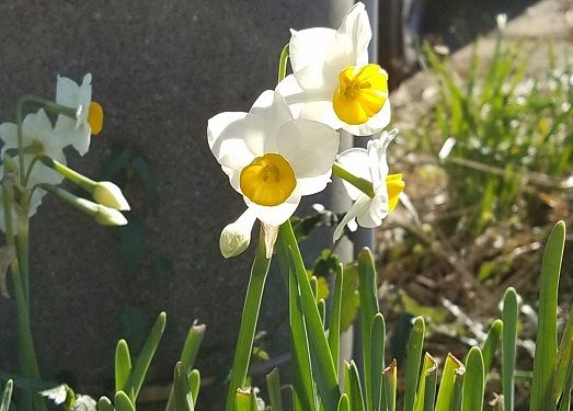 画像は通勤途中の道端 あちこちで水仙咲いています。
