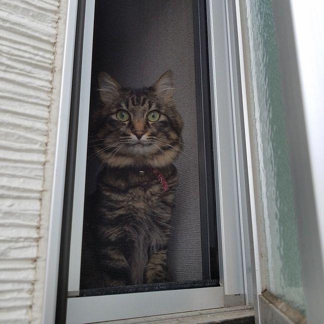 私が出勤 家を出て 鍵をして 小窓をのぞくと