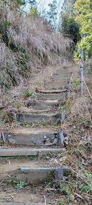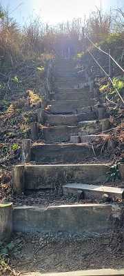 登り始めて すぐ 家の階段よりきつい 左側 登り 右側登って 上から撮りました。