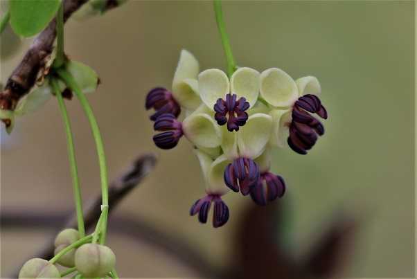画像は アケビの花  ウォーキング 途中で 撮りました。