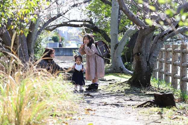場所を変えて 私の野鳥撮り現場私の後ろが池 ヘラブナ釣りの人がいますが  孫に 躍らせてみた(ランドセル背負っている)
