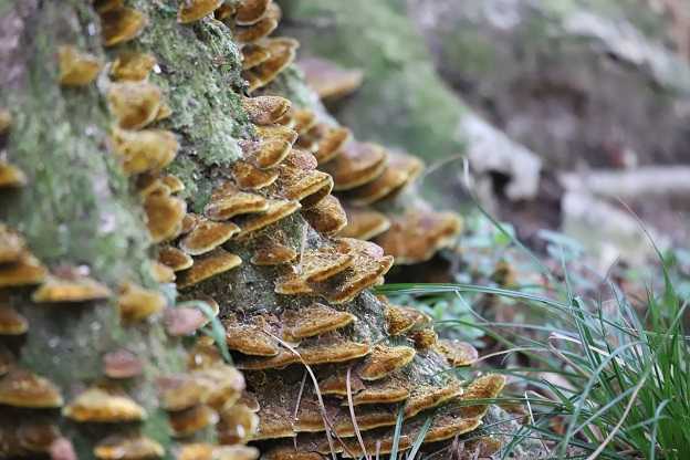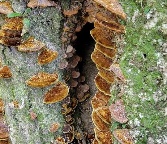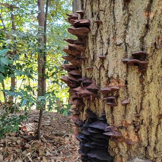 ここの 立ち木には 多くの サルノコシカケが・・これから もっと増えるのかな・・隣の木とかにも・・。