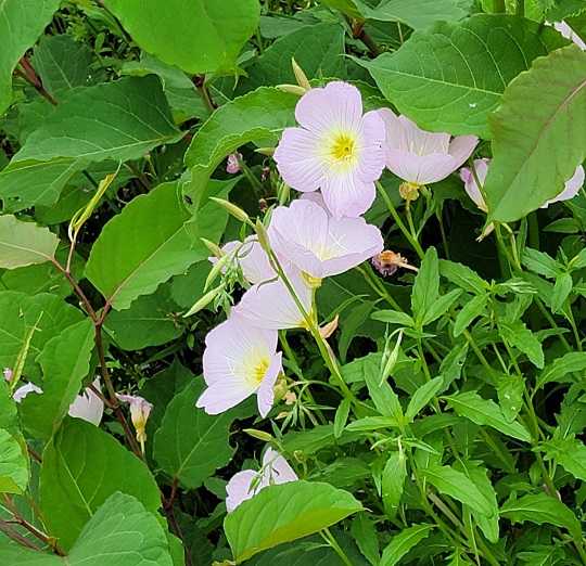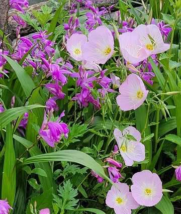 アップすると モモイロヒルサキツキミソウが咲いています。