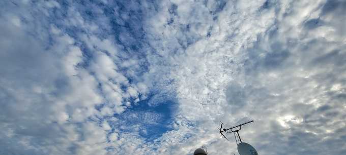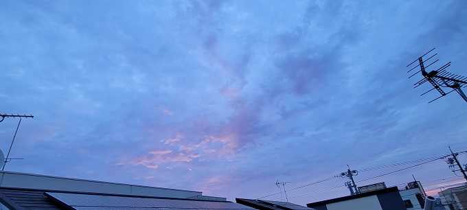 洗濯物を持って ベランダへ・・少し青空(6:45)22度