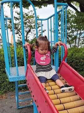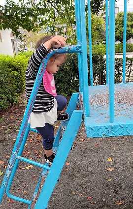 自宅近くの公園で 滑り台で 遊びました・・飽きることなく 10回以上・・見ている方が 飽きました。