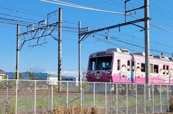 今度は 新静岡方面行 まるちゃん電車 富士山入れてみましたが‥薄くて 見ずらい。