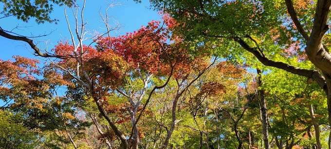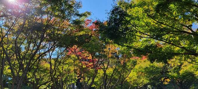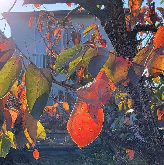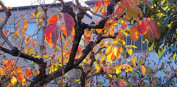 昨日は 市内をウオーキング 柿の葉が いろんな色を出して 染まっています。