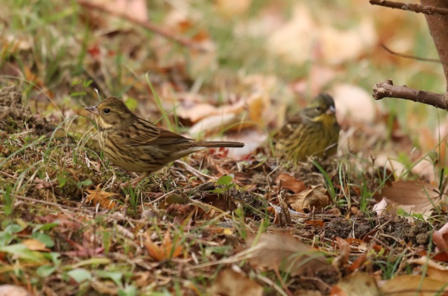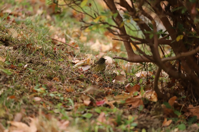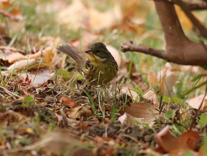 誰も来ないと 思い 道の真ん中で撮っていると 後ろに人の気配・・犬の散歩の人が・・待っている・・急いで道を譲るが・・アオジは 木立の中に 逃げる・・・。  でも見つけた!