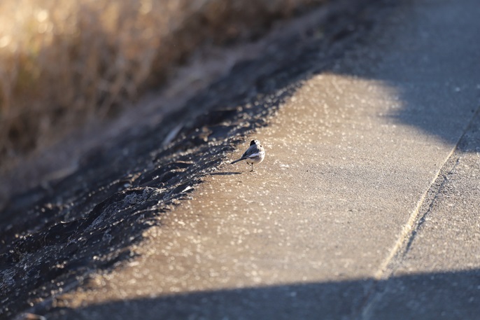 画像は 昨日の続き 帰り道で セキレイが 前を歩きます。