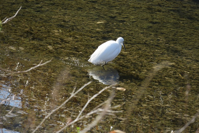 コサギが エサを撮っています。 左足で 水中を探っています。
