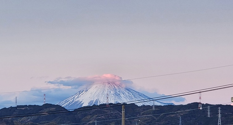 昨日の 夕方の富士山  山頂辺りが 夕日の染まっています。 この時富士山は -27度