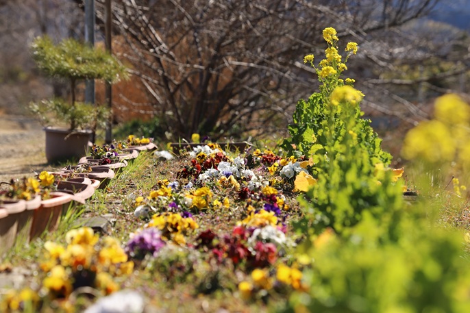画像は 2月4日 塩田川 この日は 野鳥はおらず・・土手に花壇が作ってあります。強風にあおられて 可愛そうですね。
