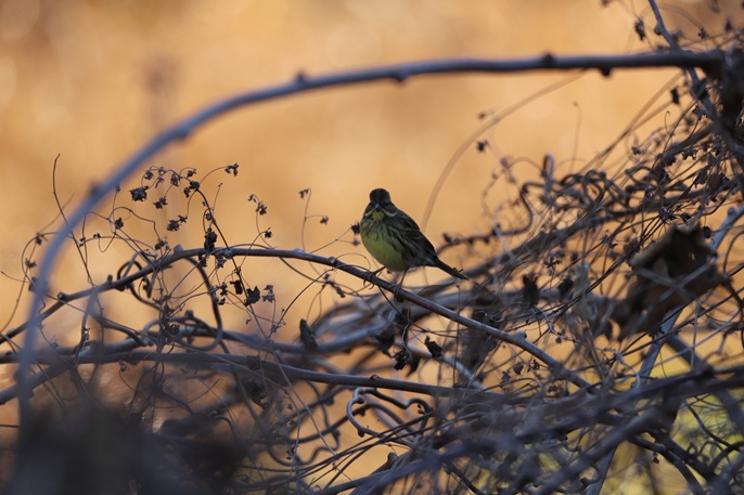 画像は まだ 公園まで行く途中 裏道の畑 カメラをリュックから出して 首から下げ 準備が終わると キウイの棚にアオジが
