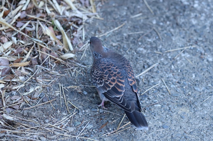 キジバトが 逃げません 約2メートル これ以上近づくと ピントが合わなくなりますが・