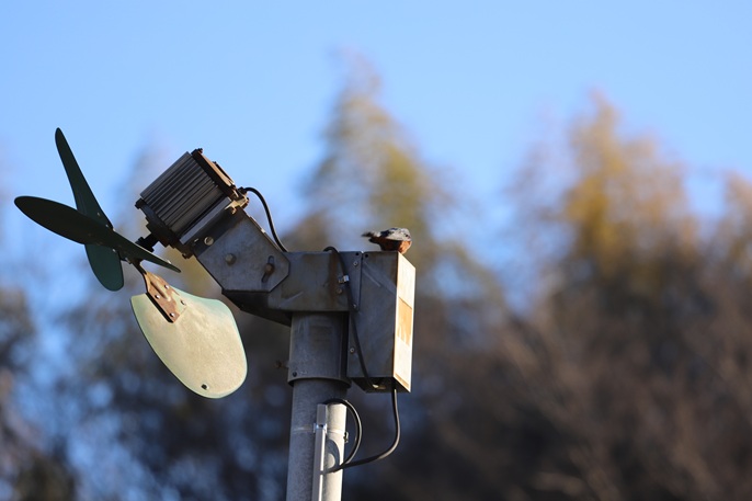 さらに行くと お茶の葉に 風を送る 扇風機(霜よけ)に ジョウビタキかな。