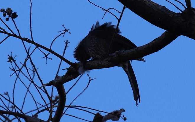 たぶん ヒヨドリ だと思います・・逆光で見にくい。