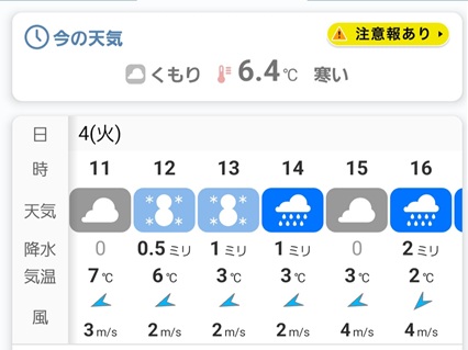 帰り際に スマホで お天気確認 あら・・雪の予報