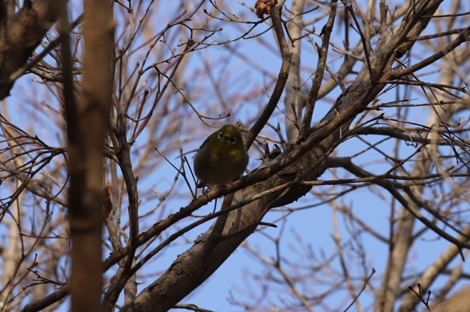 分かりにくいけど 目の変わりが白い・・メジロですね。