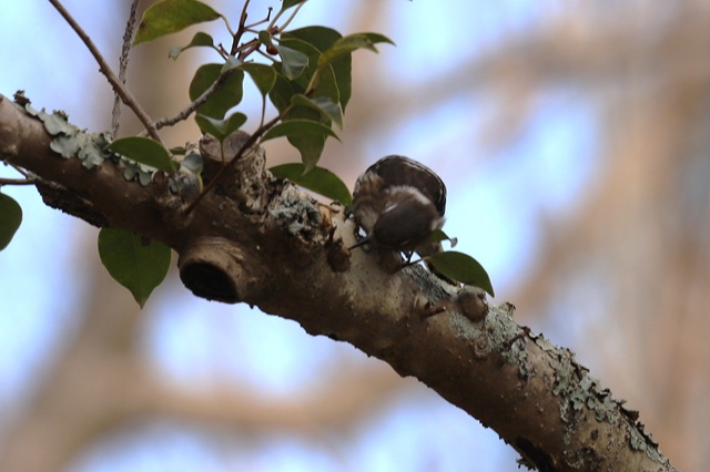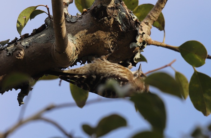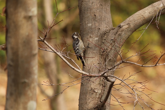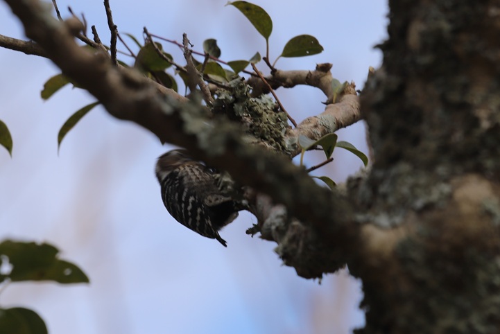 コゲラが やってきた。  後ろ姿が 刈り上げのようだ・・。