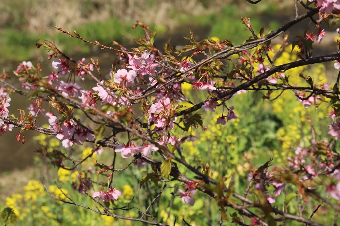 早咲きの 桜と 菜の花 桜はもう散り加減