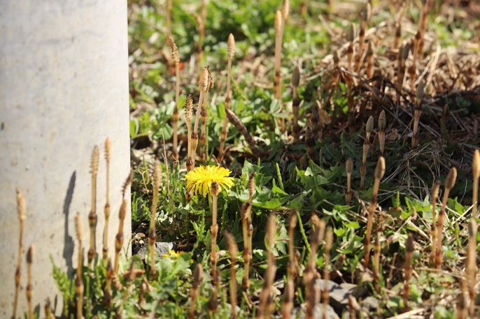 行く途中で タンポポと 土筆