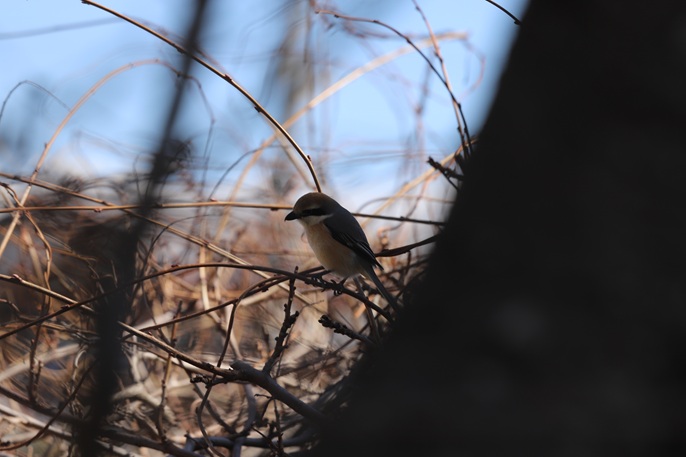 画像は 17日 の塩田川 なかなか 野鳥がいない・・すると モズが見えた。・・でも 近づくと 逃げられる・・。
